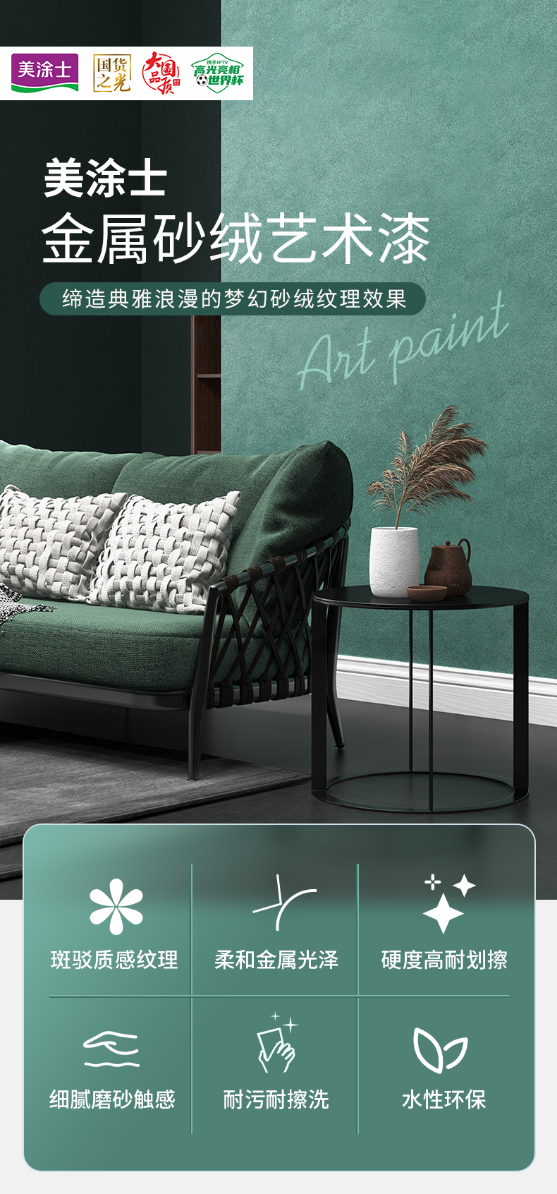 welcome海洋之神艺术漆,带有金属光泽和磨砂触感效果,是砂与绒的完美质感结合,纹理有序而又幻变,效果细腻而又典雅,打造出大气与精致兼备的高级格调!