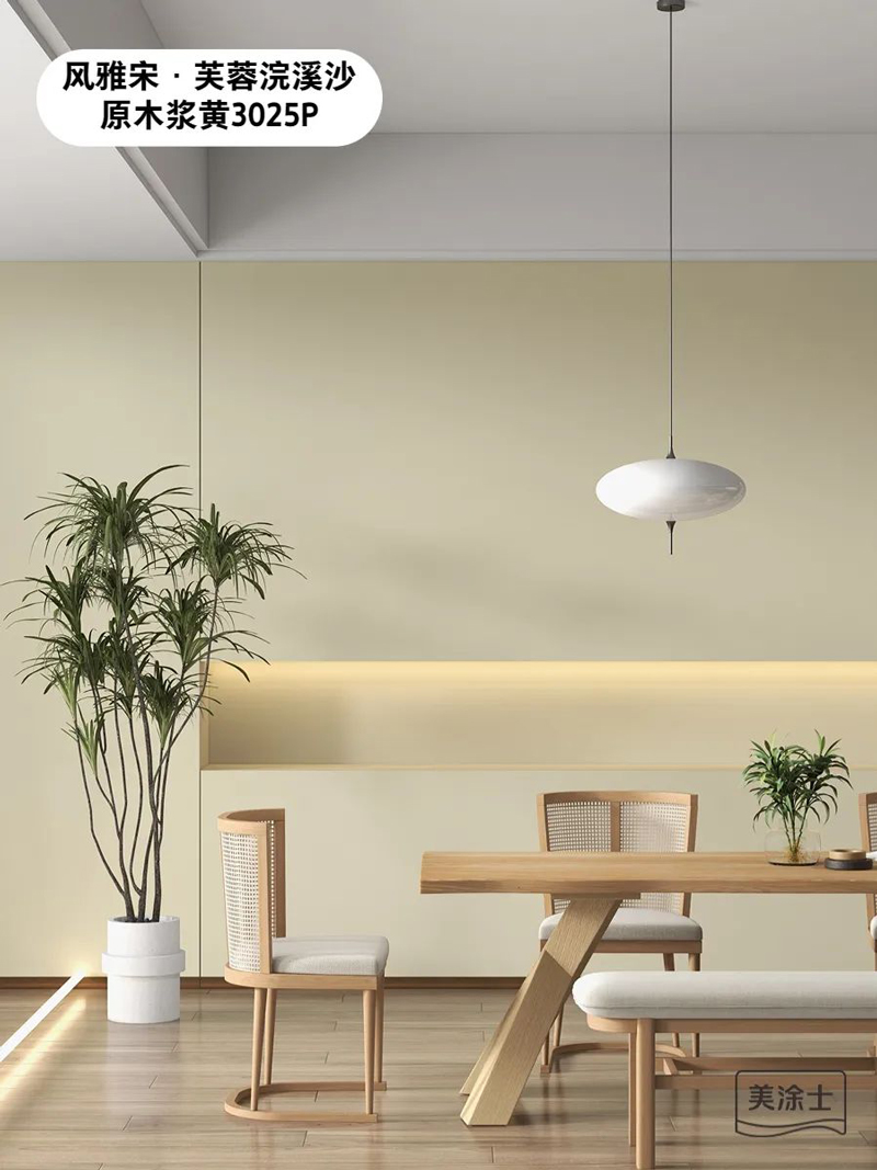 welcome海洋之神国潮色原木浆黄3025P,搭配木质家具和素色装潢,在大量铺设的浅色元素中,人的视野也似乎被扩大,空间与自然融为一体。在极简的家居布置中,即便没有艳丽的色彩点缀,原木浆黄也能打造出和谐舒适的氛围而不乏味。